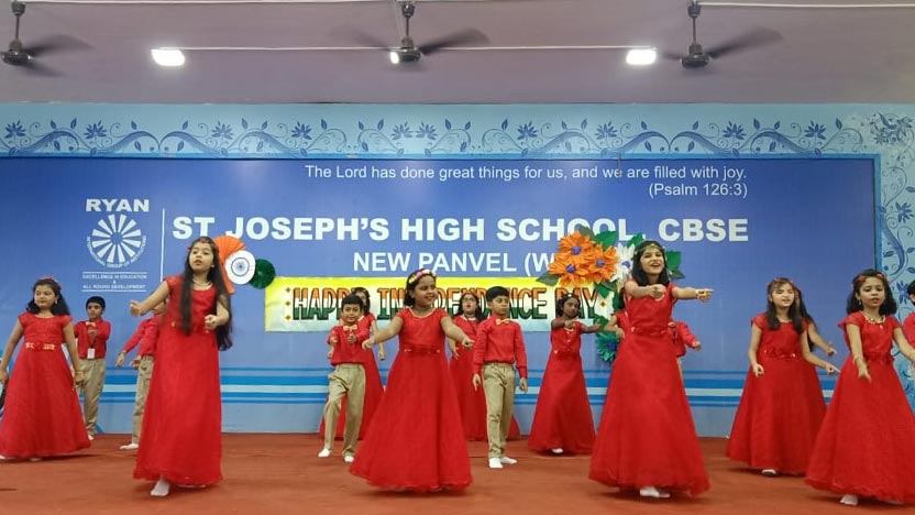 St. Joseph’s High School (CBSE), celebrated Independence Day with great fervor on 15 th August, 2019. The day’s proceedings began with the ceremonial flag hoisting by Mr. Dubal Dhakne, Senior Inspector of Police, Khandeshwar and singing of the national anthem. Spectacular The march past by the various squads was a sight to behold. The programme commenced with the Lord’s Prayer, Bible Reading, special prayer followed by prayer song and dance. Guests were offered saplings as a token of love and respect and were warmly welcomed with a welcome address. Guests also participated in tree plantation as per our Chairman Sir’s vision – “Each One, Plant One” The unprecedented patriotic fervor of the school was highlighted by the patriotic song and patriotic dance. Melodious tunes of the musical orchestra left the audience mesmerized. All the guests thanked the Management, staff & students for their efforts in making the show memorable one. The programme concluded by delivering the vote of thanks, singing the closing chorus, school anthem and national song in unison.